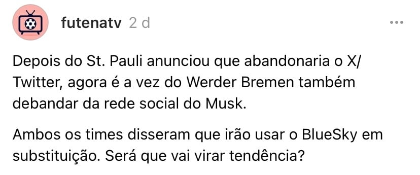 As insatisfações com o X também chegaram ao futebol. Werber Bremen e St. Pauli, da Alemanha, anunciaram a saída do app.