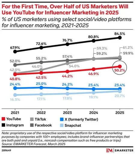 📺 YouTube toma a dianteira na publicidade com creators — mais da metade das marcas vai investir na plataforma em 2025.
