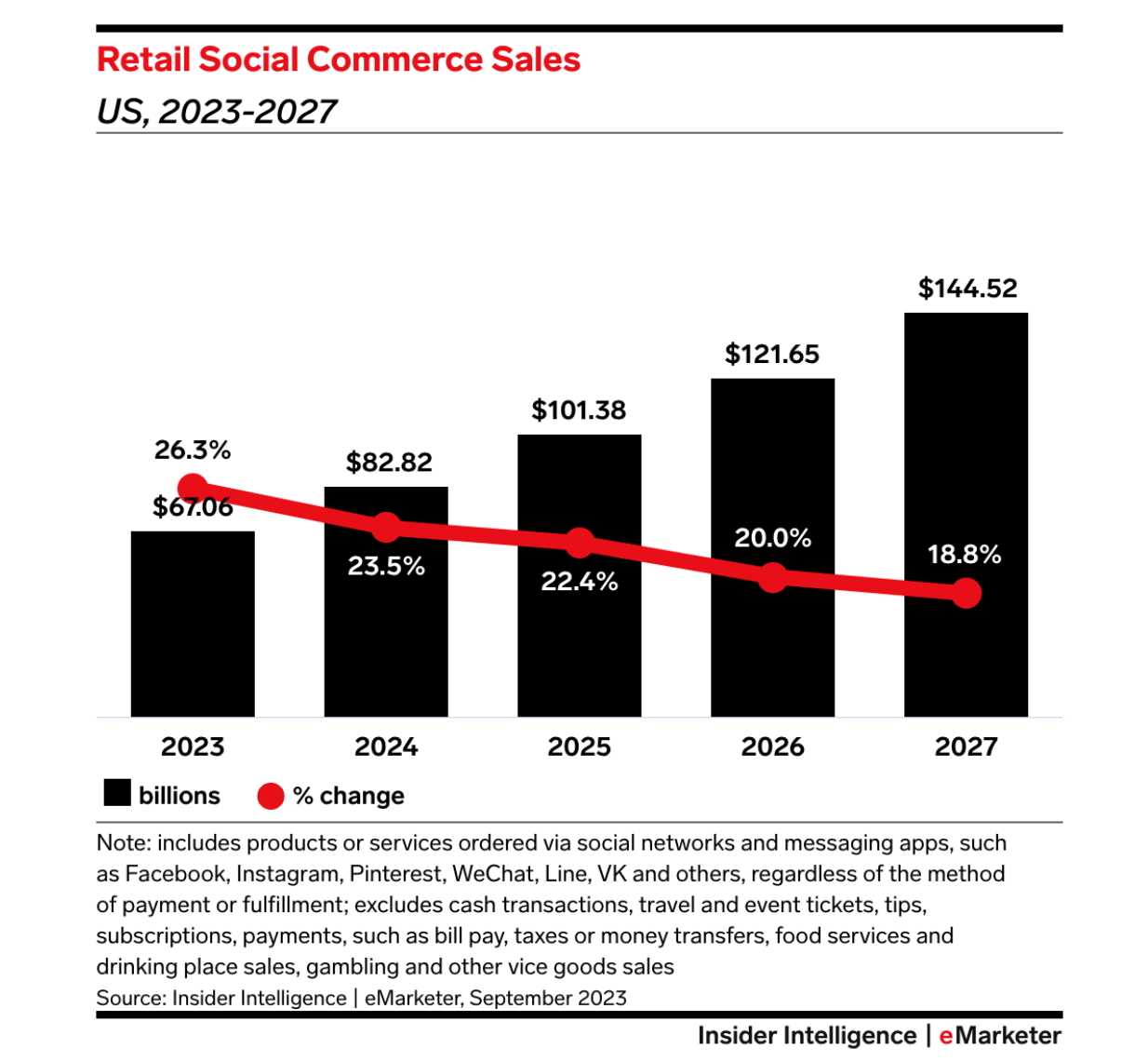 Do lado de cá, o comércio social ainda é relativamente novo, especialmente para os consumidores dos Estados Unidos. O cenário, porém, sinaliza mudanças. Veja os dados que consideram o período de 2020 a 2024: