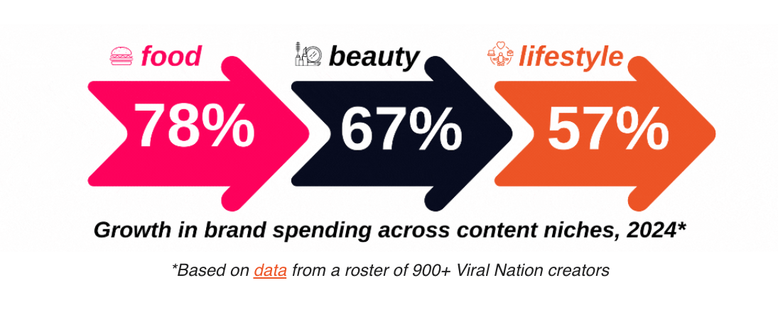 Investimento setorial crescente: Alimentação (+78%) e beleza (+67%) lideram em aportes para criadores